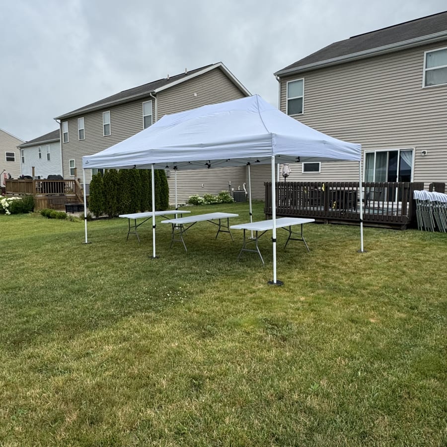 This tent goes up fast and delivers reliable shelter from the sun. With a 20x10 footprint, it comfortably covers food tables, gift areas, or smaller guest setups. Lightweight yet sturdy, it’s perfect for backyard use and quick turnarounds. ☀️